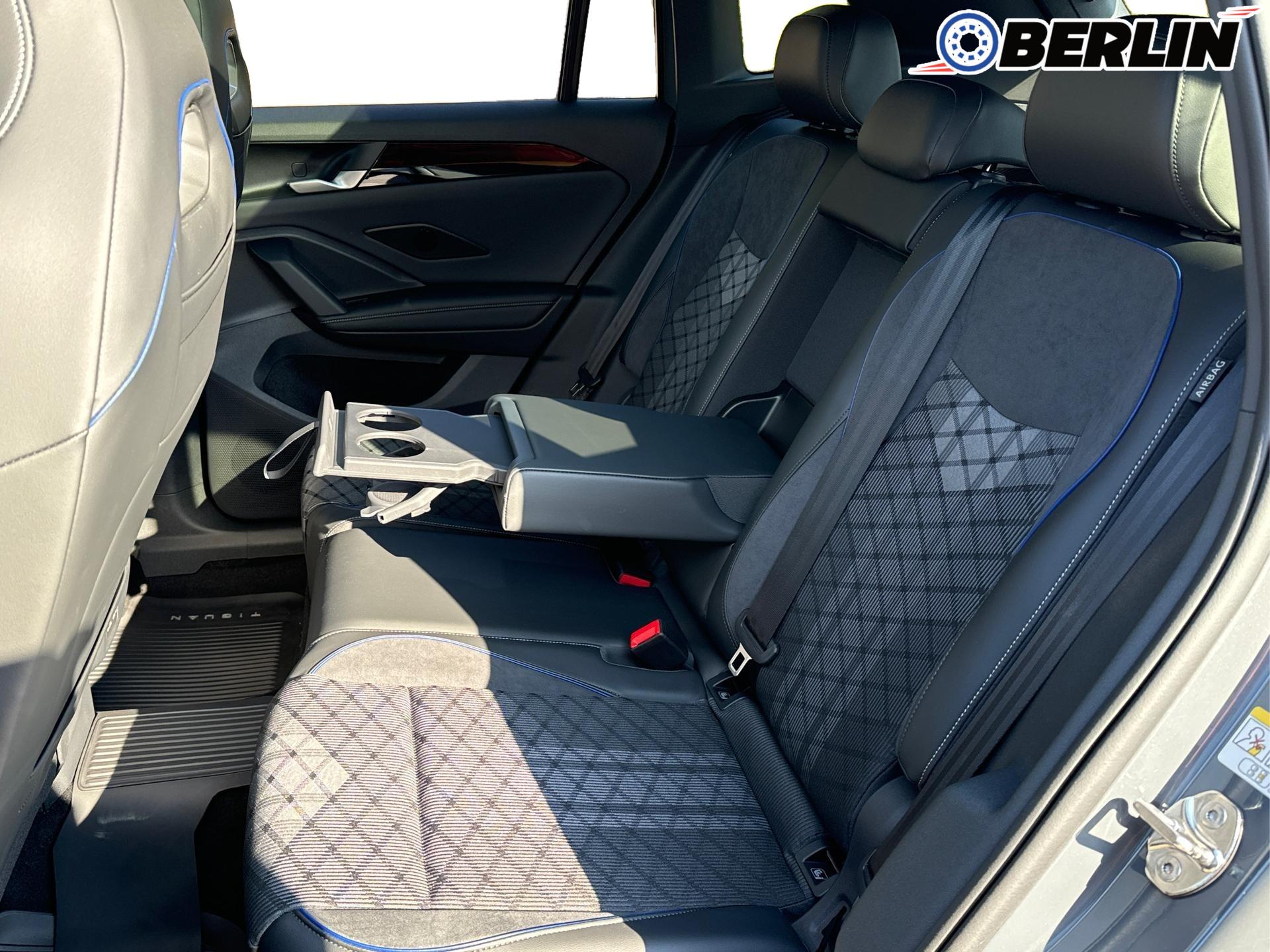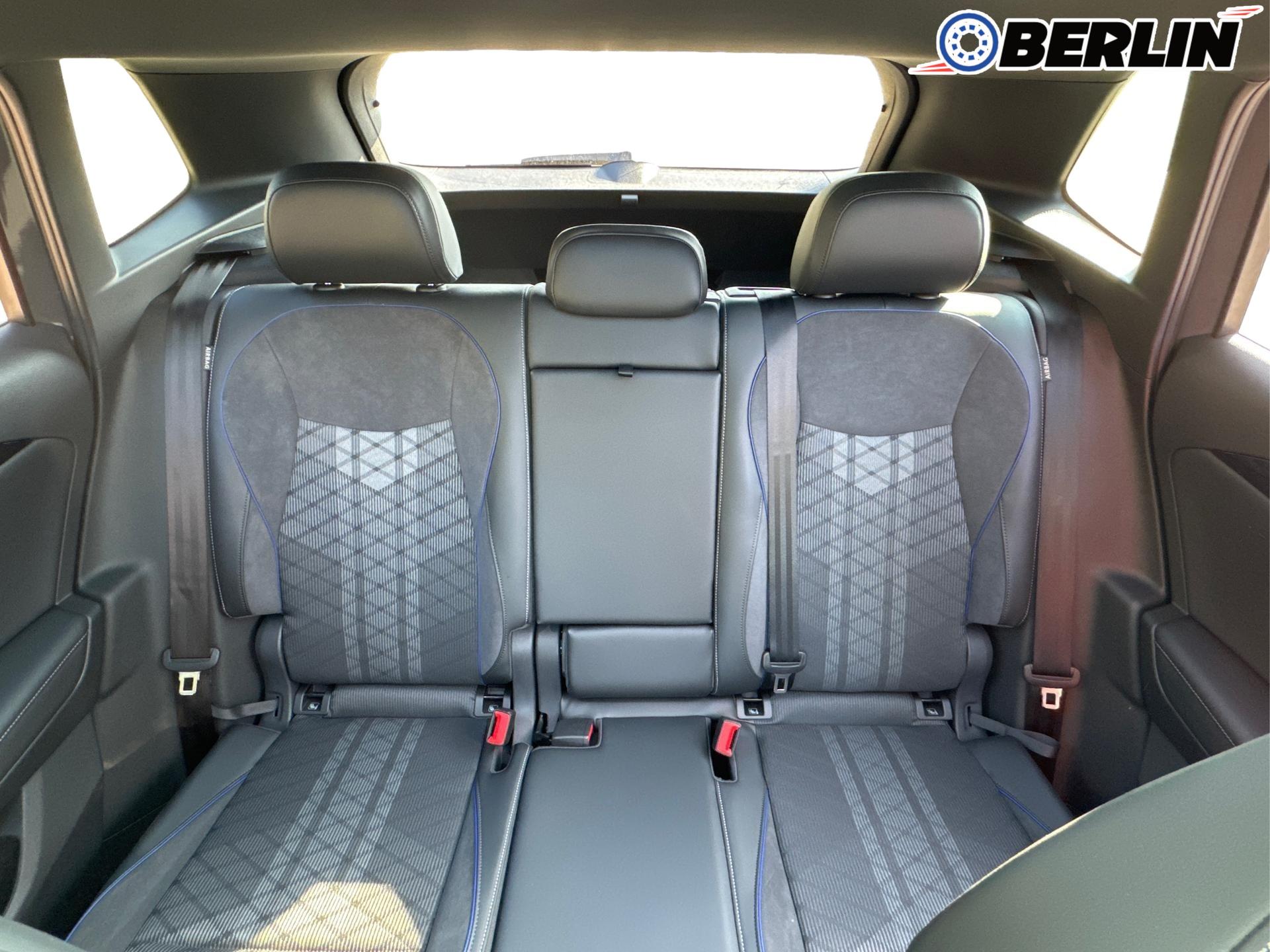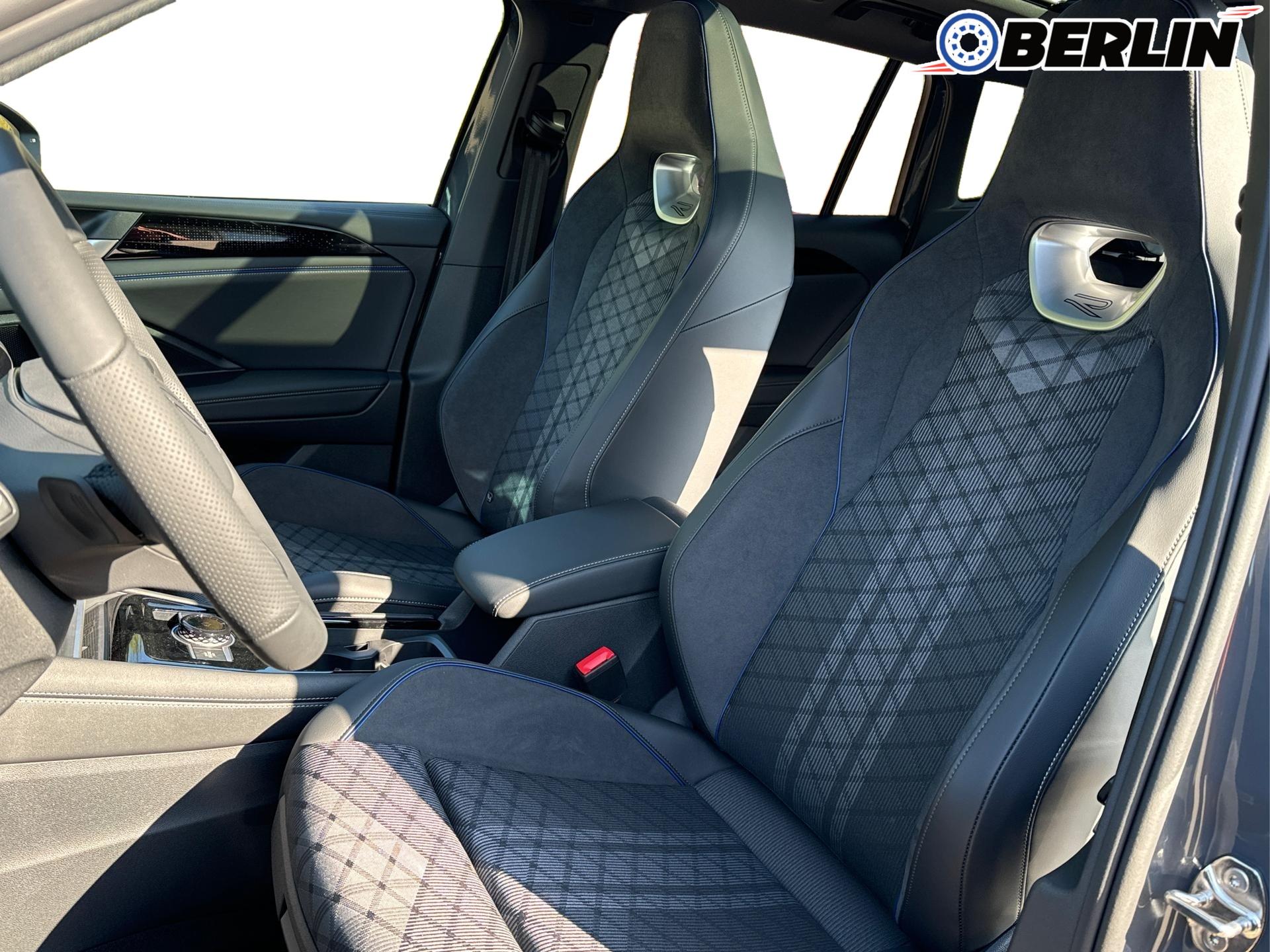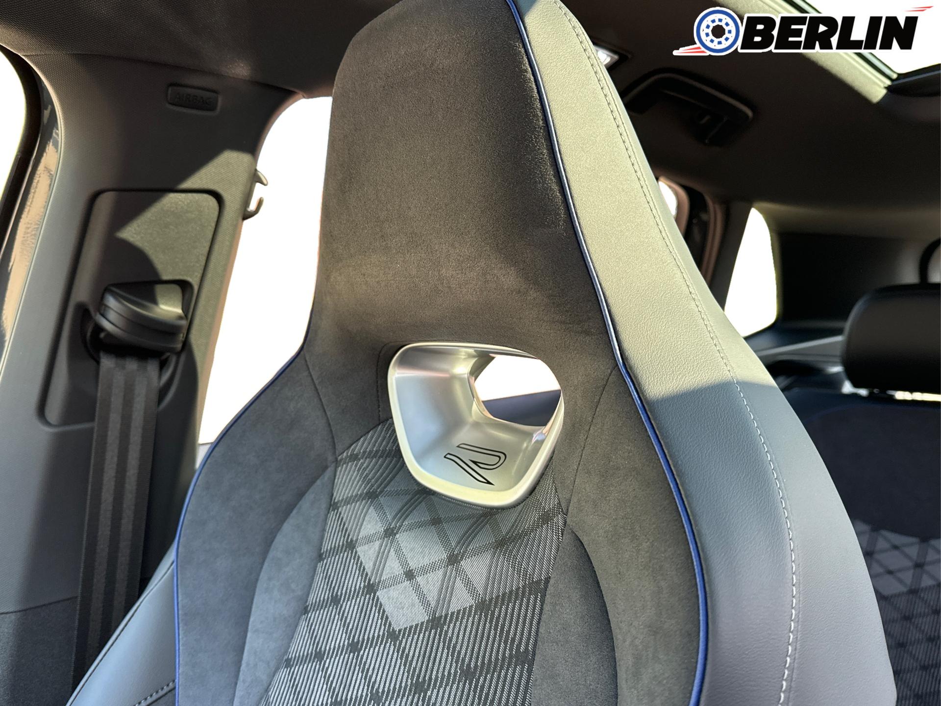 Innenausstattung R-Line Sportsitze mit integrierter Kopfstütze in Schwarz mit blauer Kontur, Sitzmittelbahnen der Vordersitze und der äußeren Rücksitzplätze in Stoff, Sitzwangen in Art Velours