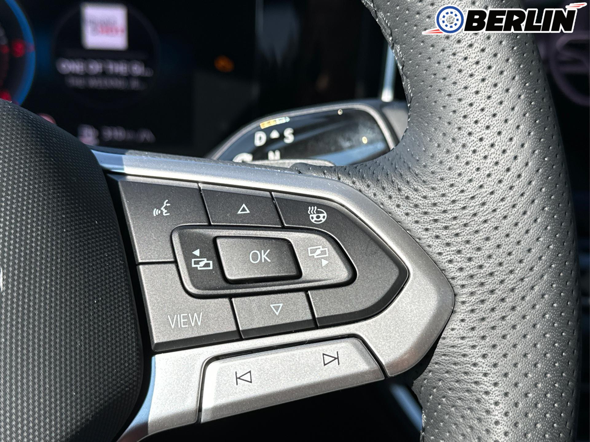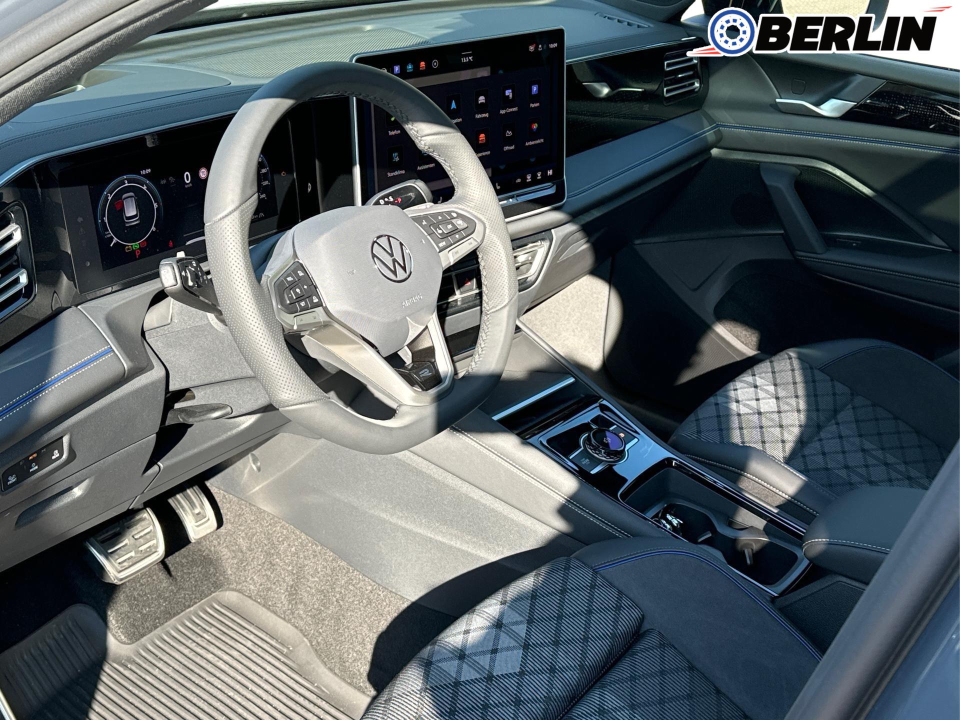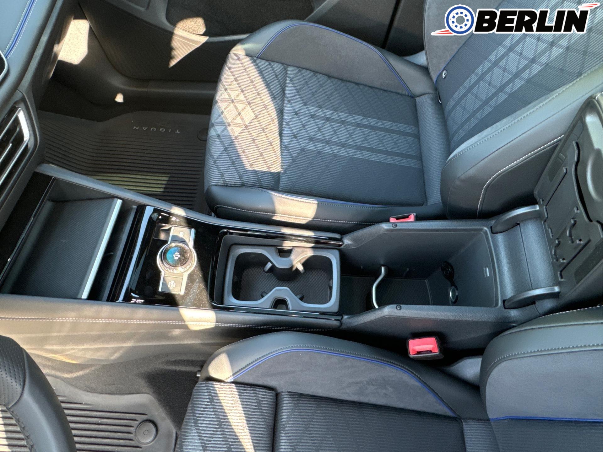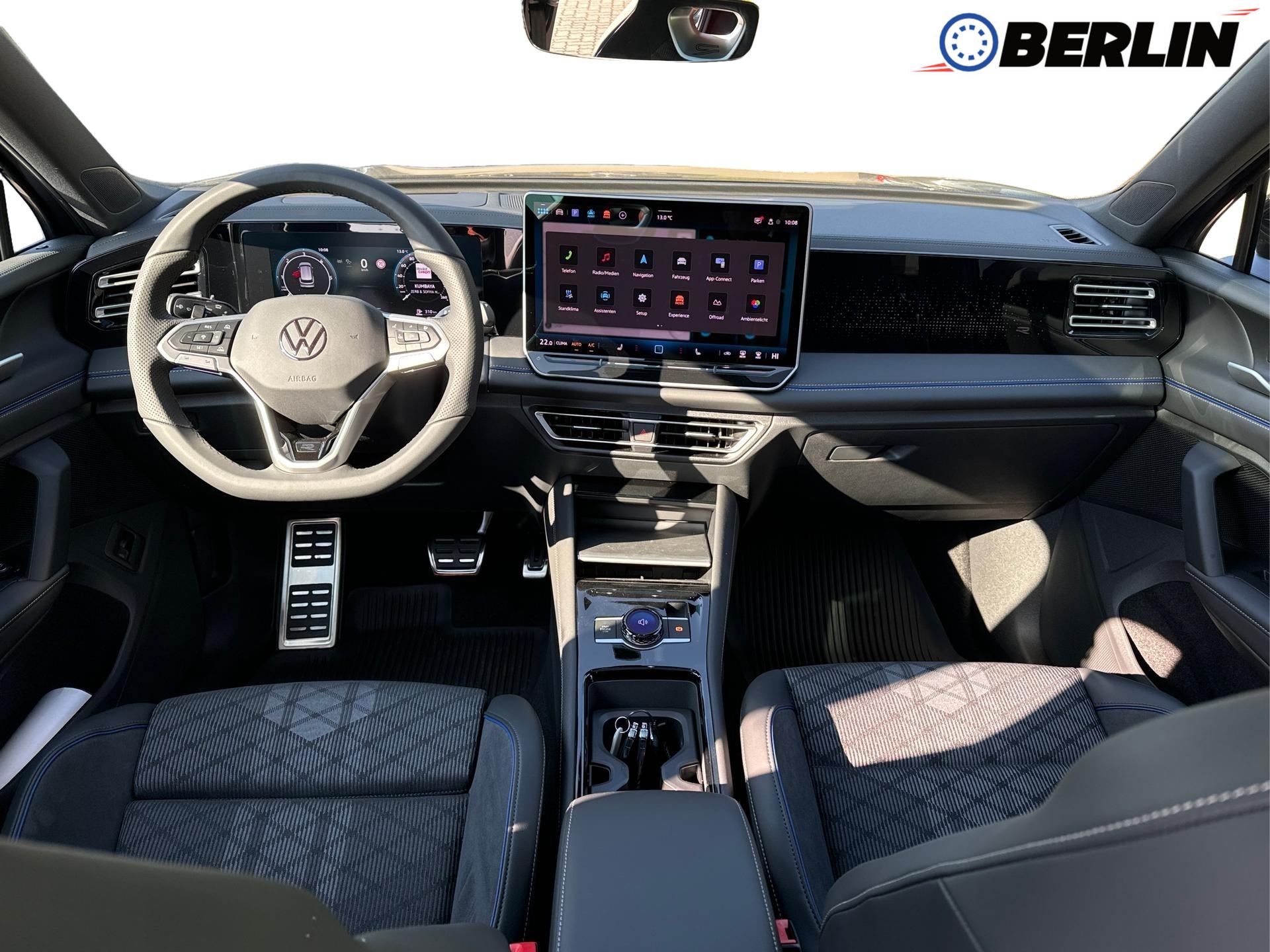 Innenausstattung R-Line Sportsitze mit integrierter Kopfstütze in Schwarz mit blauer Kontur, Sitzmittelbahnen der Vordersitze und der äußeren Rücksitzplätze in Stoff, Sitzwangen in Art Velours