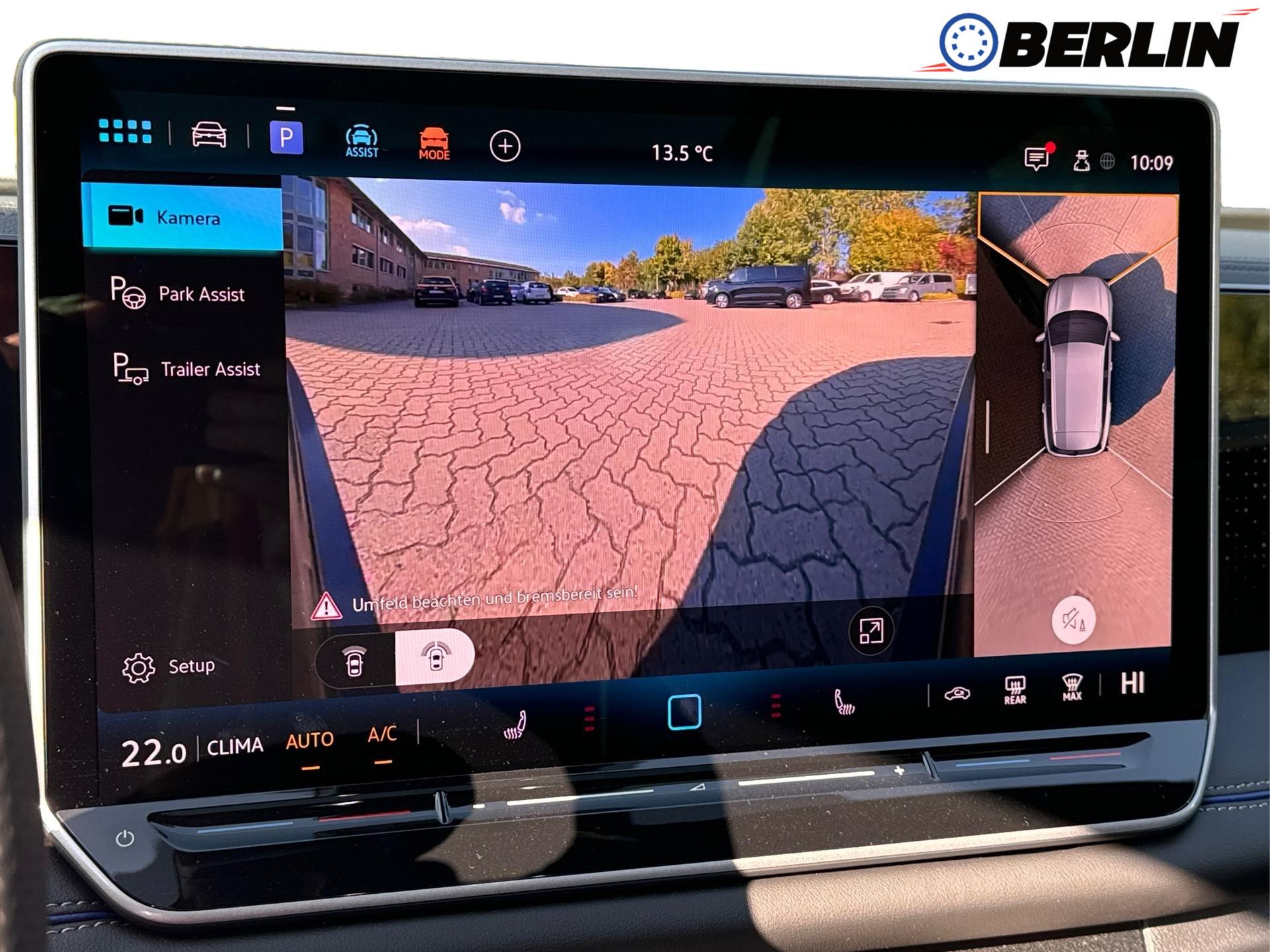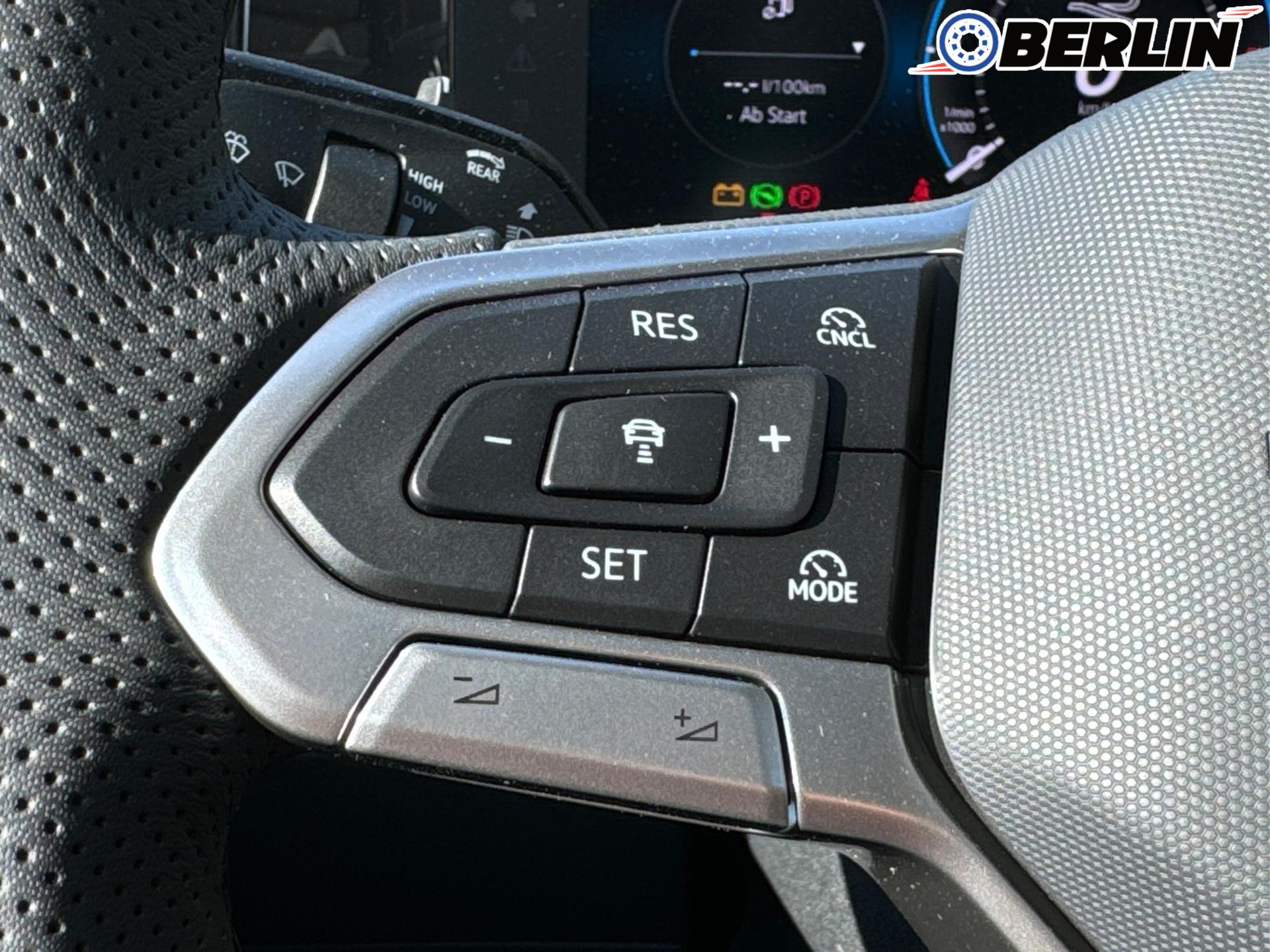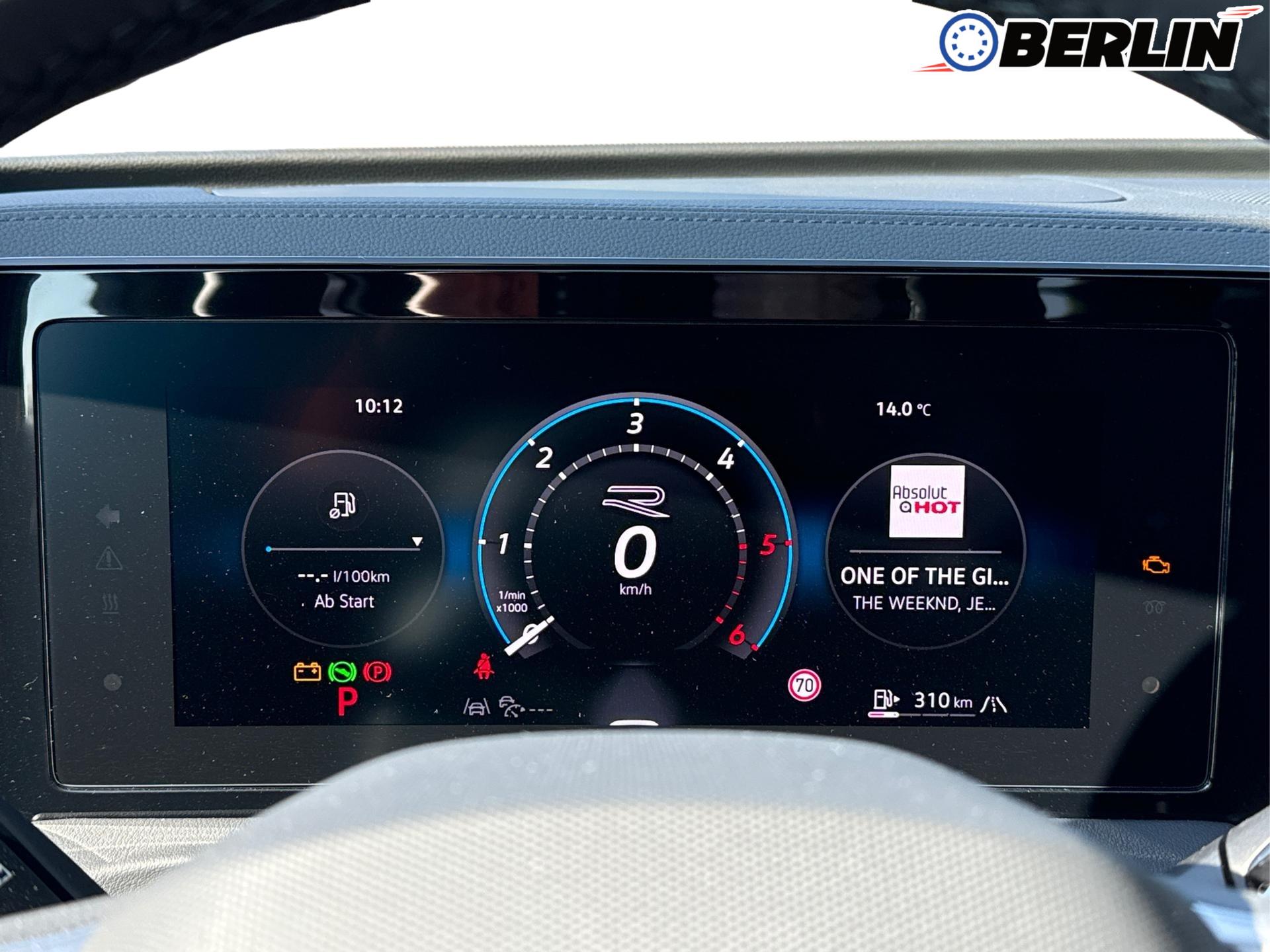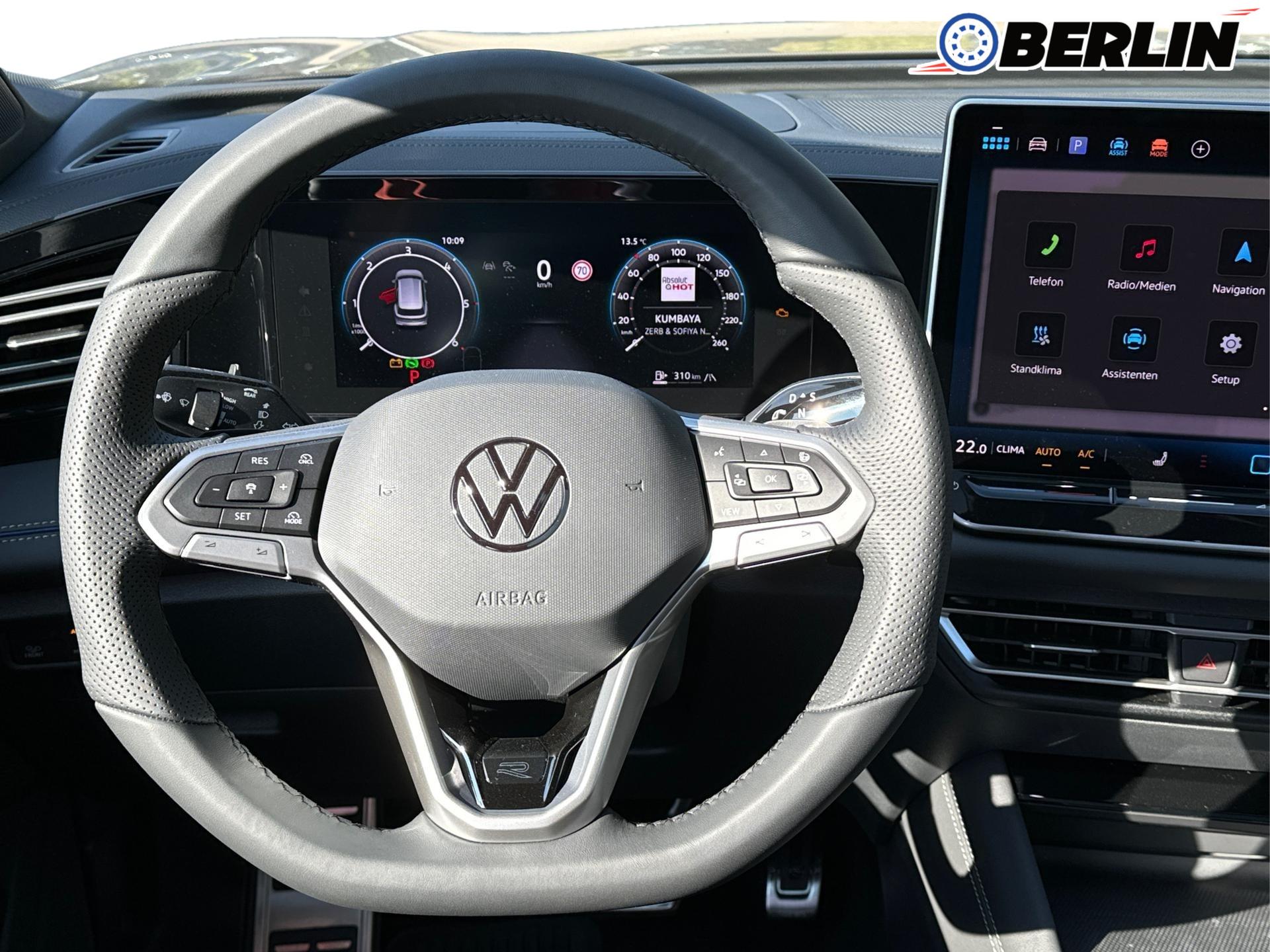 Innenausstattung R-Line Sportsitze mit integrierter Kopfstütze in Schwarz mit blauer Kontur, Sitzmittelbahnen der Vordersitze und der äußeren Rücksitzplätze in Stoff, Sitzwangen in Art Velours